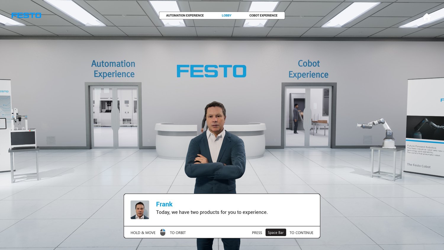 Festoverse also works as a training platform for both new and existing customers. When Festo updates the AX or the Cobot, the virtual experience can be updated without rebuilding everything from scratch.